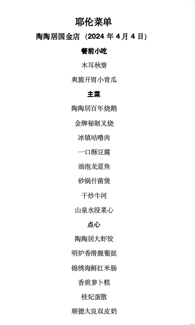 记者第一时间从陶陶居方面拿到耶伦昨日的用餐菜单,从菜单上可见,耶伦品尝的都是陶陶居的招牌菜。陶陶居百年烧鹅是当店现烤,还原本土口感,用清远黑棕鹅,经过风吹上色再上烤架,配陶陶居百年秘制酱料制作而成,烧鹅皮脆、肉嫩、入味。