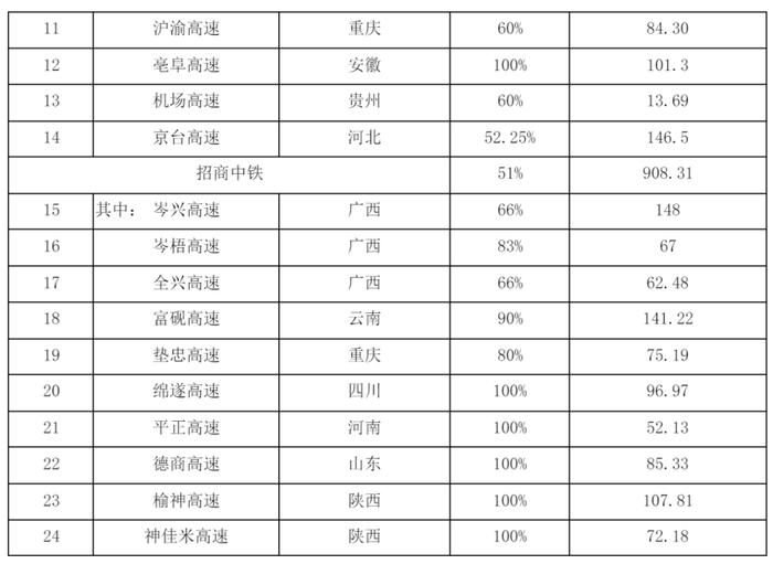 截至2023年底,招商公路投资经营总里程达14745公里,覆盖22个省、自治区和直辖市;参股26家优质收费公路公司,其中16家为A、H股公路上市公司;管理的收费公路项目共计26条,管理里程达2008公里,分布于15个省、自治区和直辖市。