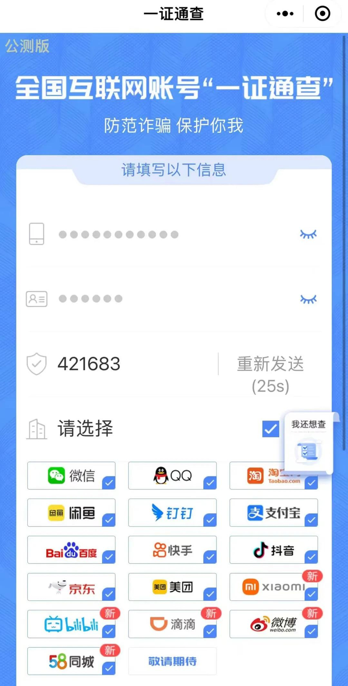其中,互联网账号覆盖了微信、咸鱼、淘宝等16个平台,提交申请后会在24小时内通过短信发送结果。