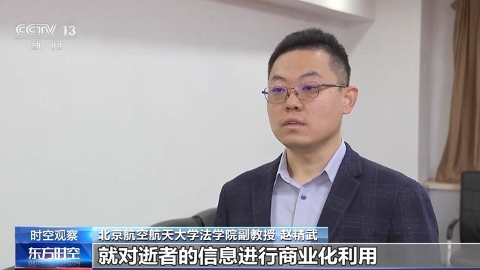 北京航空航天大学法学院副教授 赵精武:在没有取得近亲属同意的情况下,就对逝者的信息进行商业化利用或者其他目的,显然构成了对死者以及近亲属合法权益的侵犯。因为在我们看来,死者的复活并非真正意义上的复活,更多的是对于死者的一种消费。