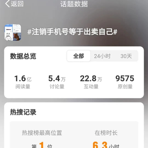 4月5日,话题#注销手机号等于出卖自己#冲上微博热搜榜第一,引发热议。