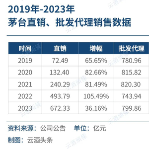 贵州茅台2023年报显示,i茅台在2023年实现销售收入223.74亿元,比2022年增加104.91亿元,增幅达到88.29%。实际上,依托数字化,包括i茅台平台在内的诸多直销渠道,已在2022年以来表现出强劲的业绩支撑能力。