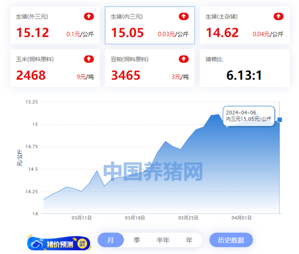 全国内三元猪价格走势图及涨跌表