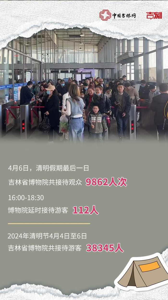 4月6日,清明假期最后一日,吉林省博物院共接待观众9862人次。16时-18时30分,博物院延时接待游客112人。