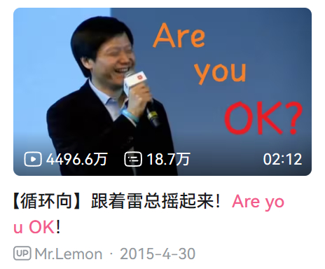 一段激情演讲之后,金句“Are you OK?”也很快成为b站鬼畜区的流量密码。