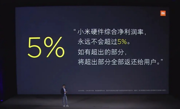 “小米硬件综合净利润率,永远不会超过5%。
