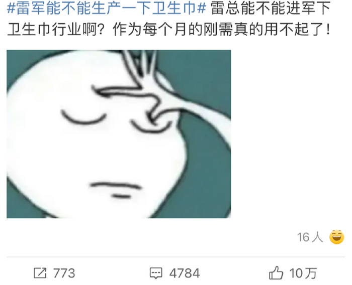 所以,小米生产卫生巾并非不可能。