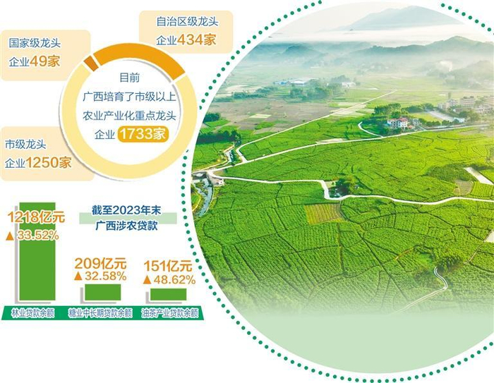 涉农金融创新为广西特色产业发展提供了源源不断的金融活水。2023年以来,“桂惠贷”投向农业198.35亿元,支持农业企业1.89万家。