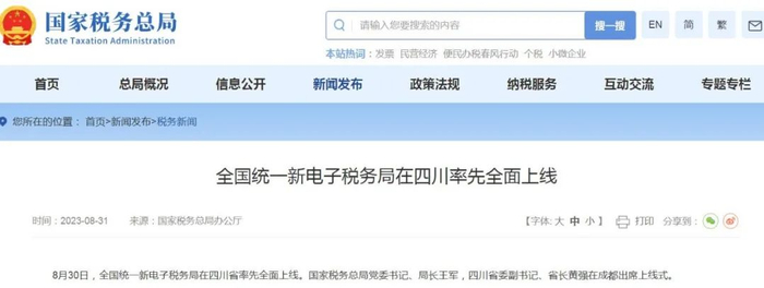 据了解,全国统一新电子税务局是在目前各地运行的电子税务局基础上,坚持以纳税人为中心,依托现代信息技术、融合线上线下业务、整合实体虚拟资源,进一步推动服务更智能、办税更高效、监管更精准,更好促进降低制度性交易成本。四川作为全国统一新电子税务局的第一个试点省份,自2022年底开始试点运行,通过不断优化完善功能、升级迭代系统,并有序扩围推进,于2023年8月30日实现四川省所有纳税人全覆盖。