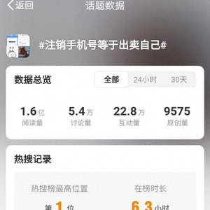 4月5日,话题“注销手机号等于出卖自己”冲上微博热搜榜第一,引发热议。