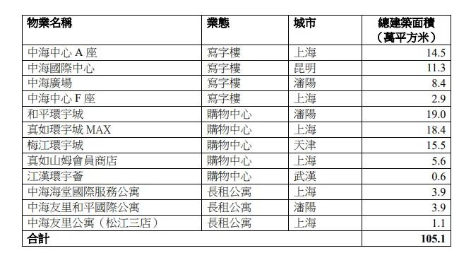 中海地产商业物业运营业务主要包括物业租赁及酒店及其他商业物业运营。年内,中海地产新增12个商业物业投入运营,总建筑面积增加约105万平方米,包括4座写字楼、5座购物中心、3栋长租公寓。