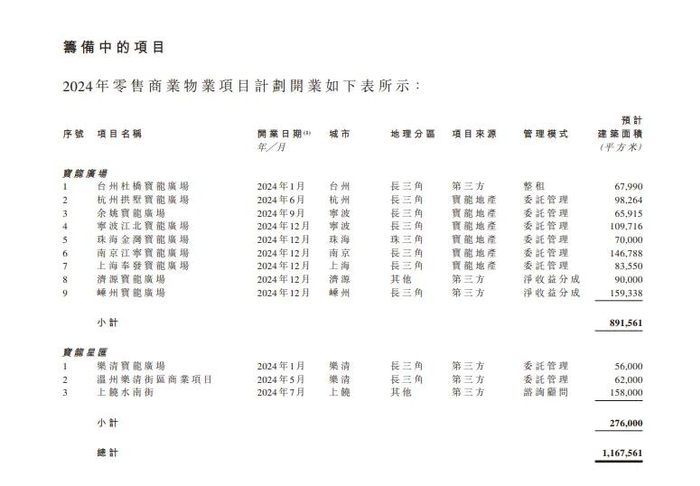 宝龙商业计划于今年开业的零售商业物业项目一览