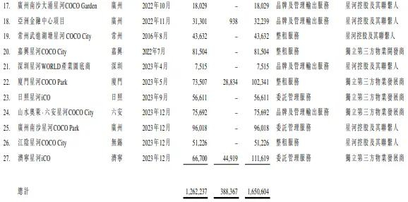 截至2023年12月31日,星盛商业已开业零售商业物业27个,已开业总建筑面积约为170万方平方米。其中已开业项目包含6座城市型购物中心COCO Park,10座区域型购物中心COCO City,10座社区型购物中心COCO Garden、1座高端家居购物中心星河·第三空间。