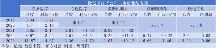 此后三年,微创医疗的分拆计划也都顺利完成,分别于2021年2月、2021年11月、2022年7月、2022年8月分拆出心通医疗、微创机器人、微创脑科学、微电生理上市。