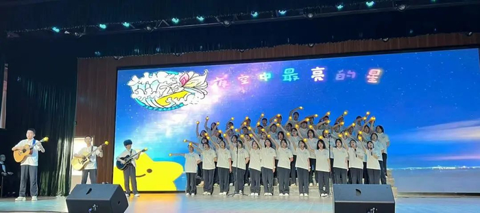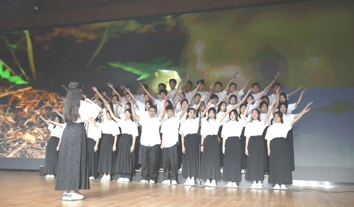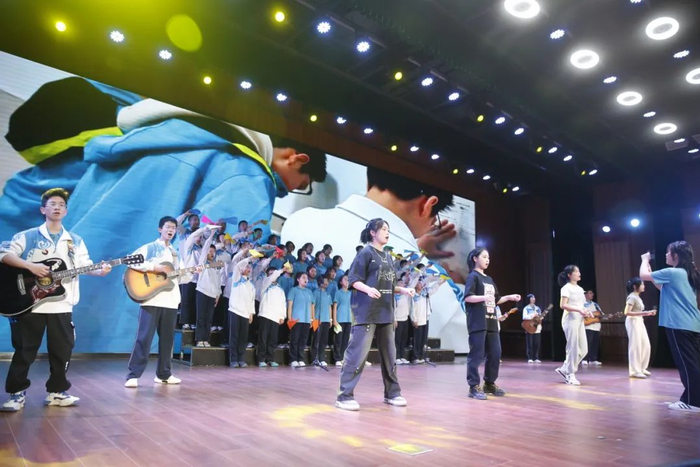 音乐奏响,歌声齐扬,一展青春自信的歌喉,唱出了意气风发的少年热情。历史的长河,在风雨征程中奔涌向前;青春的赞歌,在持续奋斗中激情唱响!