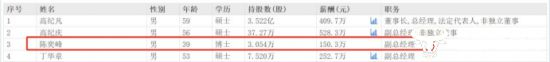 据东方财富网显示,陈奕峰的年薪是150.3万,但他在2024年才升任副总,这个薪酬应该是其他职务的报酬,作为副总,未来薪酬应该会更高。