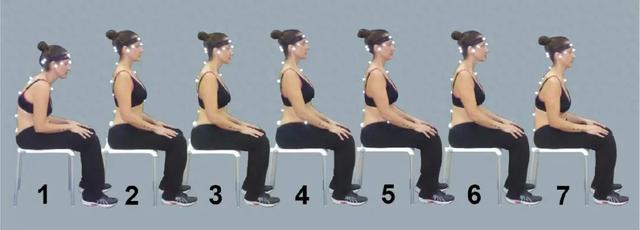 让我们先来做个测试,这张图片出自一项“物理治疗师对最佳坐姿和站立姿势的认知”的研究。你认为正确的坐姿是几号?