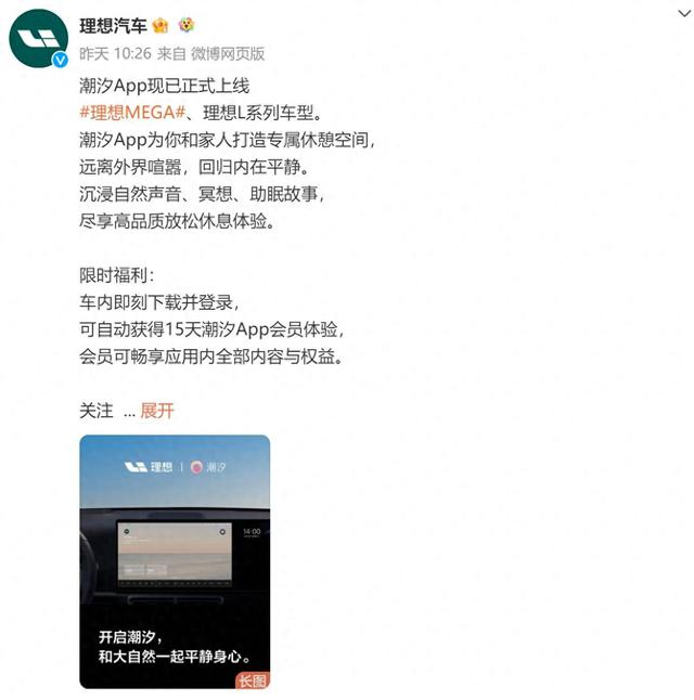 理想汽车表示,未来潮汐App还将在这个空间里持续更新,为车主带来更多优质的内容和体验。