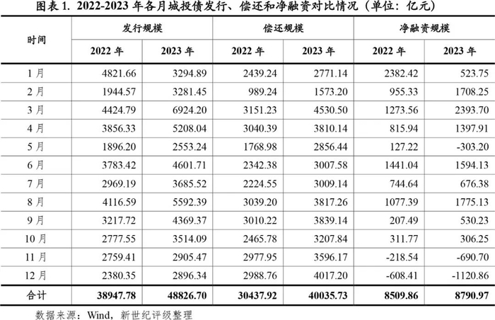 2023年城投债监管政策仍以坚决遏增化存为主线,下半年的中央政治局会议提出要制定实施一揽子化债方案,重申化债重要性,并启动新一轮特殊再融资债券,而35号文、名单制发审政策则在政策层面对城投新增融资进行严格约束,城投债发行审核趋严,新增融资急剧收缩。
