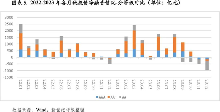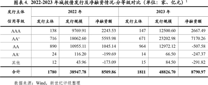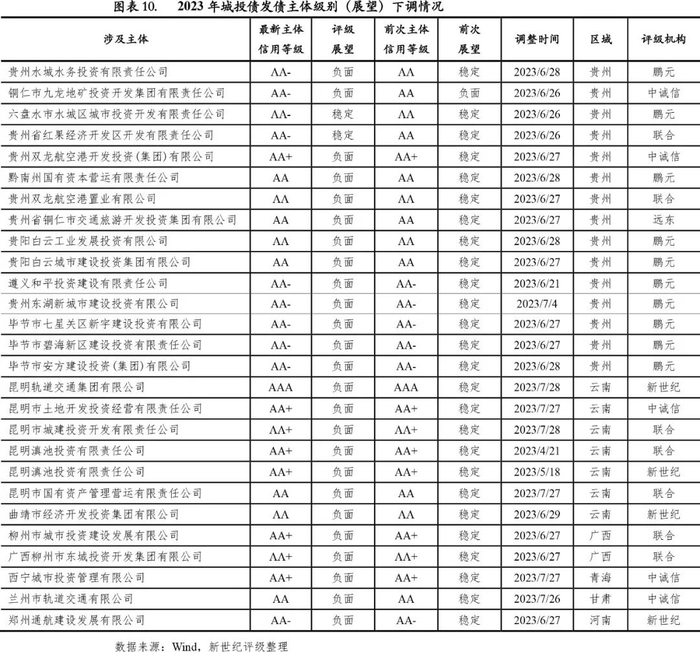 [2] 多家评级机构对同一家发行人进行级别调整,仅统计1次;级别调整企业统计口径为2023年末尚有存续债券的wind城投口径企业,下同。