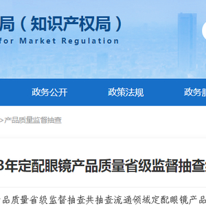 近日,山东省市场监督管理局公布2023年定配眼镜产品质量省级监督抽查结果(二)。具体信息如下: