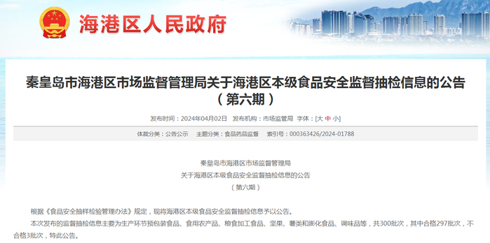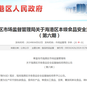根据《食品安全抽样检验管理办法》规定,现将海港区本级食品安全监督抽检信息予以公告。