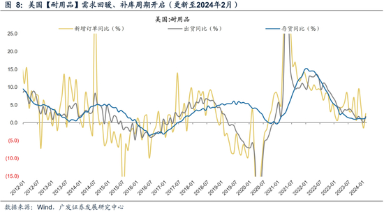 其次,美国耐用品需求回暖、补库周期开启是驱动制造业景气度回升的另一重要因素。
