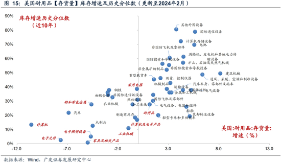 年初以来,美国耐用品的出货与订单需求也开始有企稳迹象,除了地产复苏带来的后周期耐用品消费需求提升之外,整体较低的库存水平也是支撑耐用品需求企稳的一大关键因素。