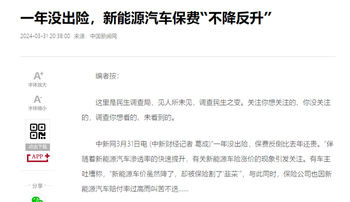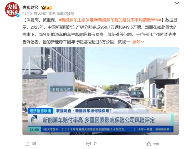 除了新能源汽车降价让消费者备受关注外,新能源汽车保费不降反升、续保难等现象也引起各方关注,成为热门话题。