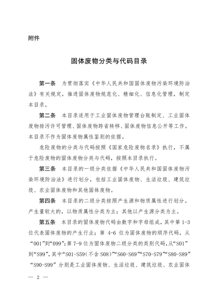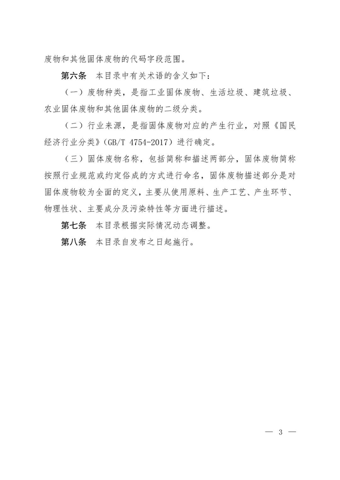 生态环境部印发《固体废物分类与代码目录》和《固体废物污染环境防治信息发布指南》