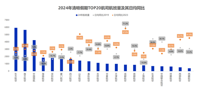机场方面,据航班管家数据显示,今年清明假期期间,上海浦东进出港航班量排名第一,其次分别是北京首都、广州白云。日均同比来看,千万级机场中仅9家机场日均航班量同比负增长;另外有9家机场日均相比2019年、2023年清明假期皆增长,其中济南遥墙、海口美兰、武汉天河同比分别增长17.1%、15.0%、12.9%。