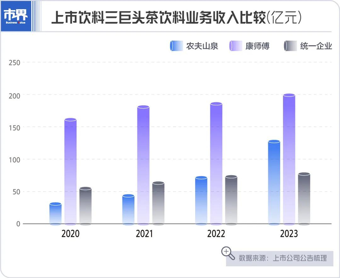 在东方树叶等无糖茶饮产品的助推下,农夫山泉茶饮业务的收入在2023年首次超过了统一,现在,正朝康师傅追去。