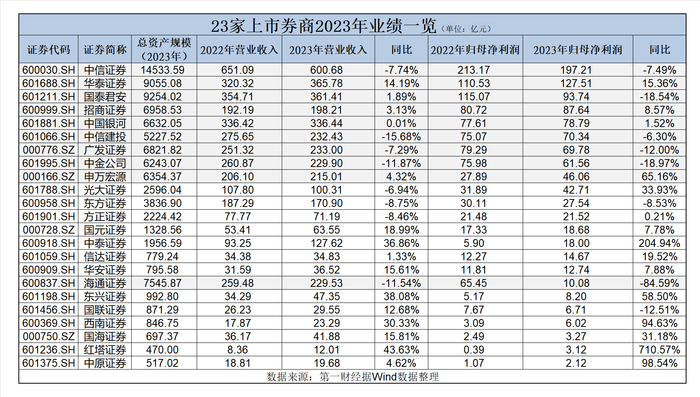 23家上市券商业绩全览:头部半数营收净利双降,中小券商表现抢眼