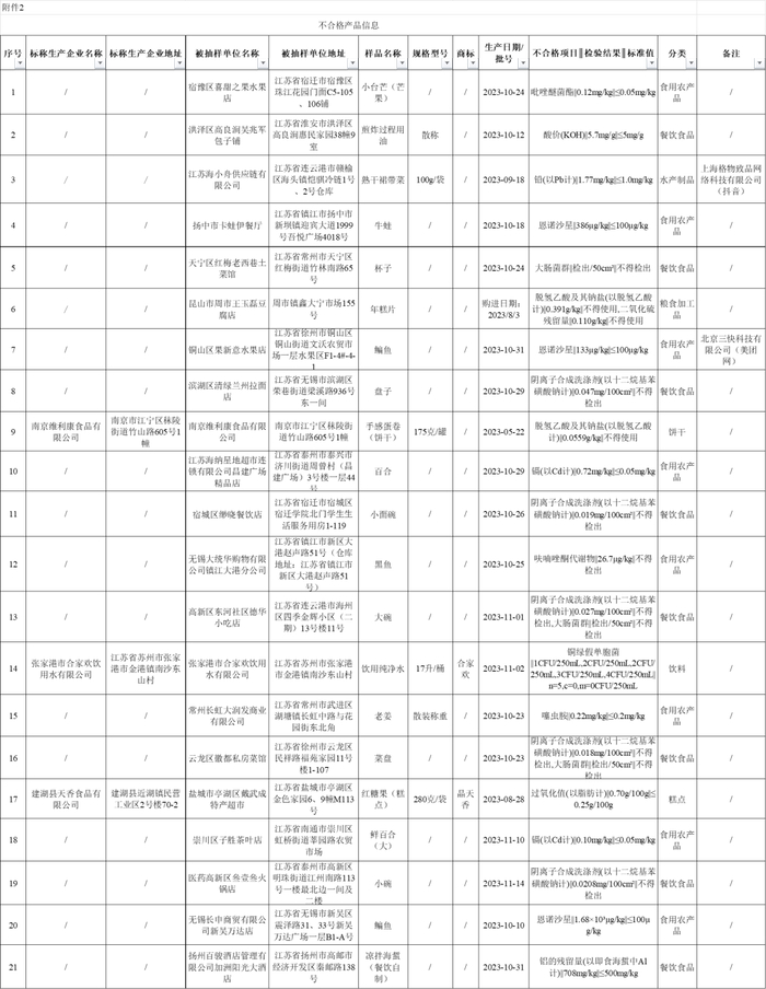 针对抽检中发现的不合格食品,省市场监督管理局已责成相关设区市市场监管部门立即组织开展处置工作,查清产品流向,督促企业采取下架召回不合格产品等措施控制风险,依法处理违法违规行为。