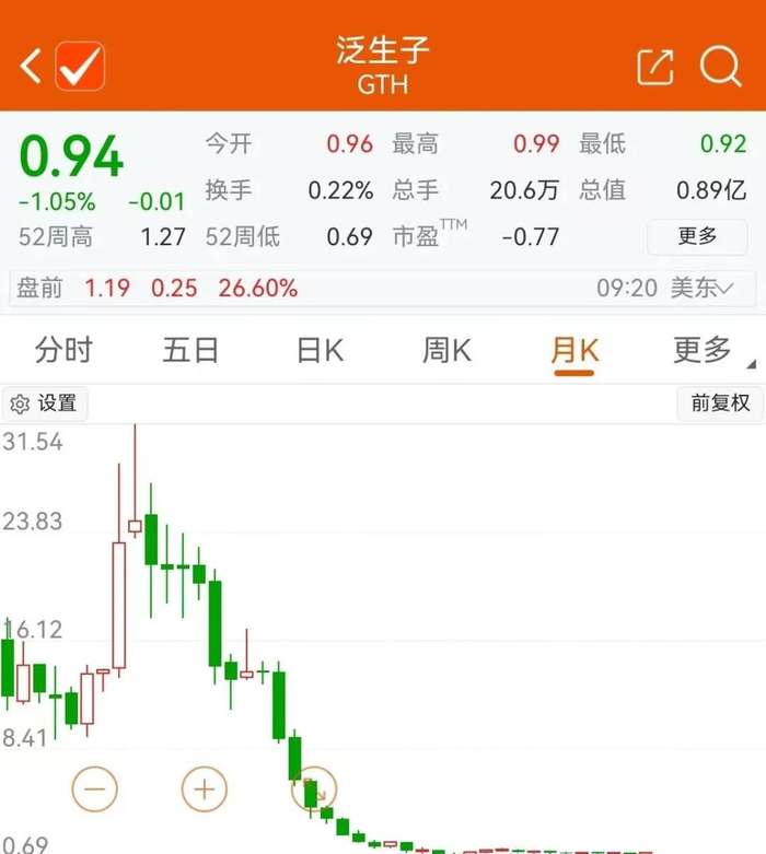 在短短2年时间内,泛生子的股价飞流直下,最终长期徘徊在1美元以下,相对于发行价跌去90%以上,曾经31美元/股的股价高点更是恍如黄粱一梦。