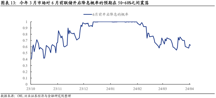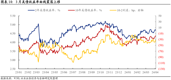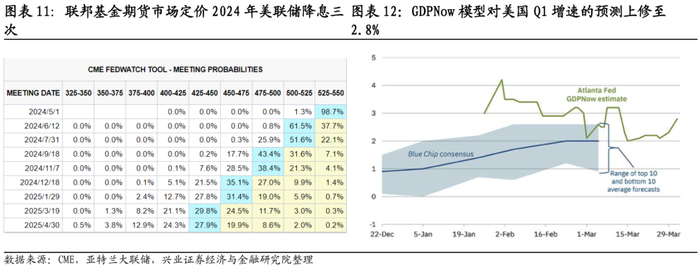 美债方面,收益率4%以上的十年美债具备配置价值。软着陆的路径对美债构成利空,但在货币政策周期由紧转松的拐点,美债收益率明显反弹的风险较低。具备高票息的美债仍然是优质资产,当前的长端利率水平下也具备一定资产利得空间。如果二季度美国基本面数据持续强劲,不排除联储降息时点进一步后延至下半年,因此对美债的交易还需要保持一点耐心。在大类资产摆布的优先级上,美债不如权益和大宗商品,但是作为全球安全资产的价值明显好于黄金。