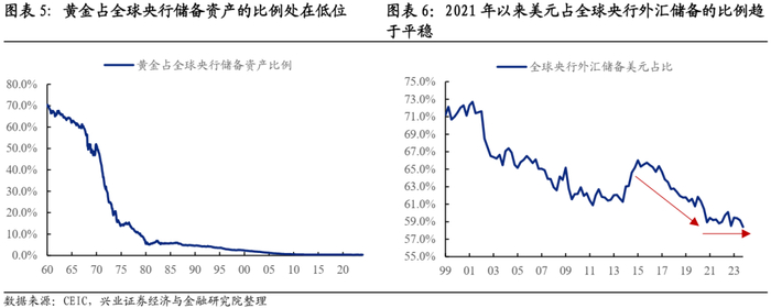 美元作为国际储备货币的地位依然稳固。“布雷顿森林体系”解体后,美元资产成为全球央行储备资产的绝对主体。欧元诞生后,美元地位受到一定挑战,但目前美元在全球央行储备资产中的占比仍高达58%,2021年以来这一比例相对稳定。从数据上看,2022年的俄乌冲突并未导致全球央行加速“去美元化”。美元资产从安全性、流动性、收益性等角度综合考量,仍然是全球央行储备资产绕不开的选择。长远看,美元作为全球储备货币的地位可能会动摇,但在短期“美元信用体系坍塌”是个伪命题。目前美国经济在发达经济体中表现强势,而且作为AI技术的领头羊其全要素生产率很可能受益于新一轮产业革命。在当前时点将金价上涨归因于美元地位动摇显然是不合时宜的。