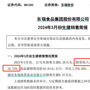 公告显示,3月份东瑞股份商品猪销售均价达到了16.04元/公斤,环比上升0.05%。神农集团也称,3月公司商品猪价格呈现上涨趋势,商品猪销售均价为14.01元/公斤,比2024年2月份上涨7.44%。