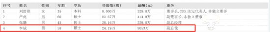 值得一提的是,尽管李斌在公司中有着很重要的地位,但他持有的股份不高,为24.19万股。而年薪高达8653万元,每天均赚23.7万元。不过,很少有单位发钱这么多,高管薪酬一般由工资+奖金+长期激励性报酬组成。他的薪酬不知道是否大部分是给的股票的价值,即长期激励性报酬。