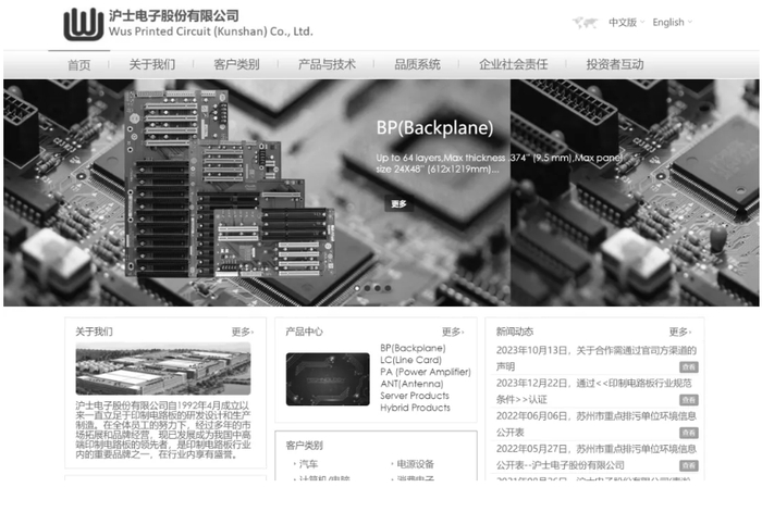 官网资料显示,沪电股份于1992年在江苏省昆山市设立,并于2010年在深圳证券交易所中小企业板挂牌上市。