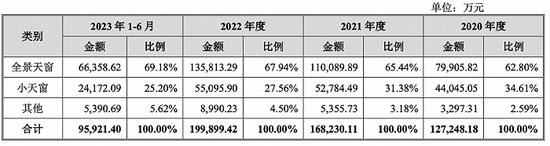 具体来看,报告期内,毓恬冠佳的收入主要来源于全景天窗和小天窗,其中全景天窗收入占比在6成以上。2020年-2022年,毓恬冠佳在中国汽车天窗市场的份额分别为9%、10%、14%,逐步提升,伟巴斯特始终位居行业龙头。