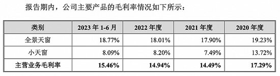 毓恬冠佳解释称,公司汽车天窗产品毛利率下滑主要原因为不同项目产品毛利率不同,报告期内公司毛利较低的产品销量占比增长带来的结构性差异。