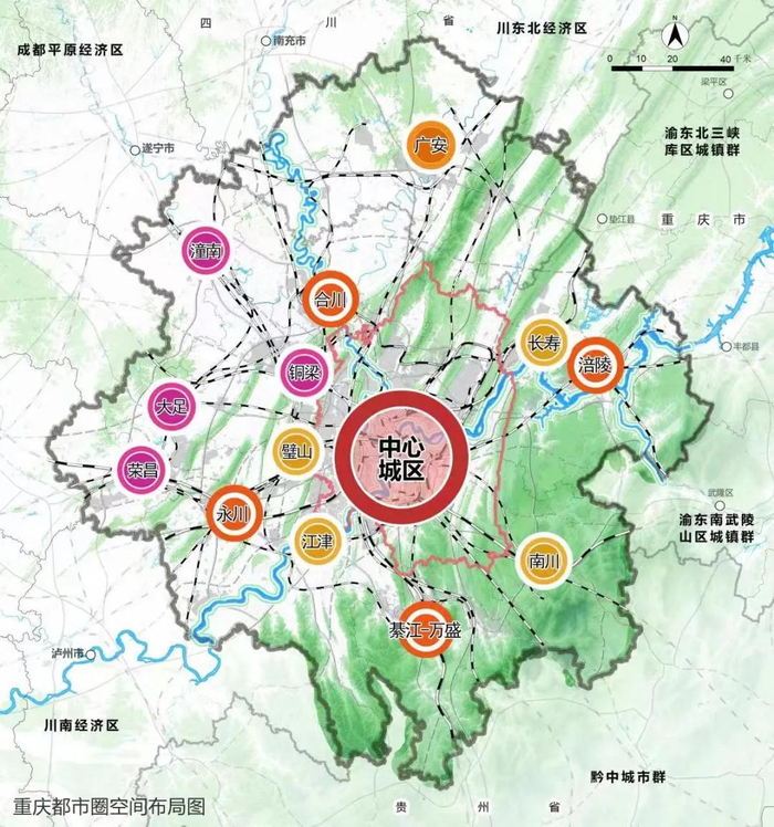 根据规划,重庆都市圈涵盖重庆21区和四川广安市,虽然四川1市入围,而重庆却并非所有区县都被囊括其中。