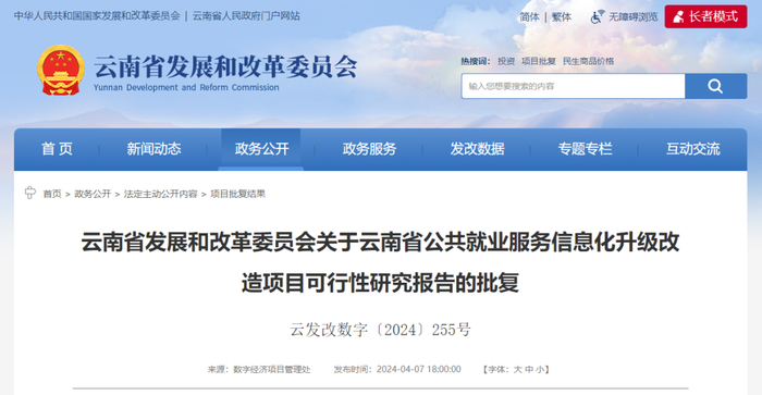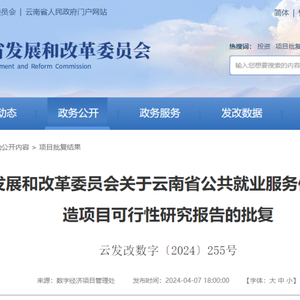 《云南省就业局关于申请云南省公共就业服务信息化升级改造项目立项的函》收悉。根据《关于进一步加快就业信息化建设应用工作的通知》(人社厅函〔2023〕93号)《关于加快推进职业技能培训信息化建设有关工作的通知》(人社厅函〔2022〕88号)要求,省发展改革委组织省内有关专家对项目可行性研究报告进行技术审查并出具审查意见。现就有关事项批复如下: