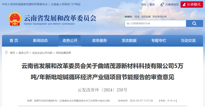 云南省发展和改革委员会发布了
