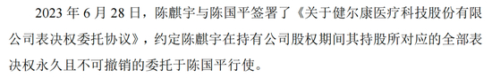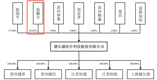 随着2020年1月该代持关系解除,健尔康有限变为陈国平单独持有。5个月后,陈国平将5%的股权无偿转给其配偶郭息孝,健尔康有限成为“夫妻店”。2021年12月和2022年1月5日,陈国平又分两次将26.05%的股份无偿转让给了独女陈麒宇,不过其并未被认定为共同实际控制人。