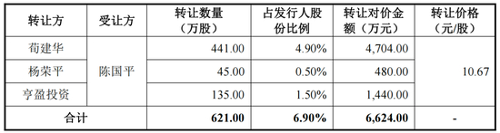 2023年7月26日,陈国平分别与荀建华、杨荣平和亨盈投资签署了《健尔康医疗科技股份有限公司股权转让协议》,受让荀建华、杨荣平和亨盈投资持有发行人的全部股份,转让价格为10.67元/股,总对价6624万元。