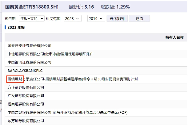 所以,我一直等着公募基金的年报出来,因为年报里,会披露ETF的前十大持有人,我主要关注三只规模最大的黄金ETF,分别是华安、国泰和博时的。