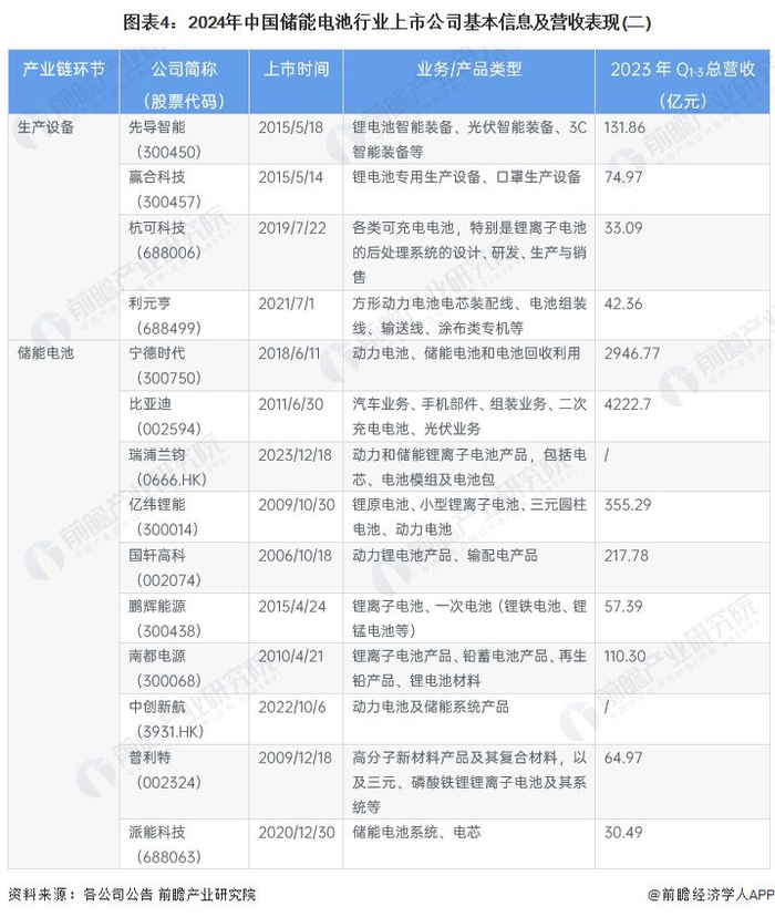 【最全】2024年储能电池行业上市公司全方位对比(附业务布局汇总、业绩对比、业务规划等)