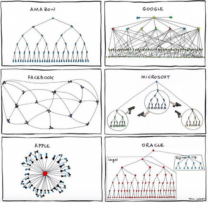 在这种畸形的制度下,员工无时不刻想着如何比赢队友,同事之间勾心斗角,微软高管曾将这种公司文化比作“狗咬狗”。还有漫画将微软的组织系统描绘成敌对帮派结构,大家相互用枪指着对方。